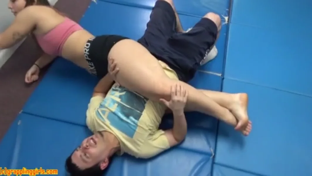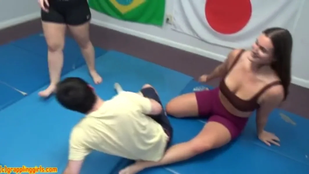 Peyton Pythons and her friend Annika want to wrestle the smaller man to test his strength. Both women are bigger and stronger than him which puts him at a disadvantage. He tries his best to wrestle against both of them but the two women defeat him. Their hard and strong thighs wrap around him and squeeze so tight that he loses his stamina. It is a very humiliating experience for a man to lose to a woman.